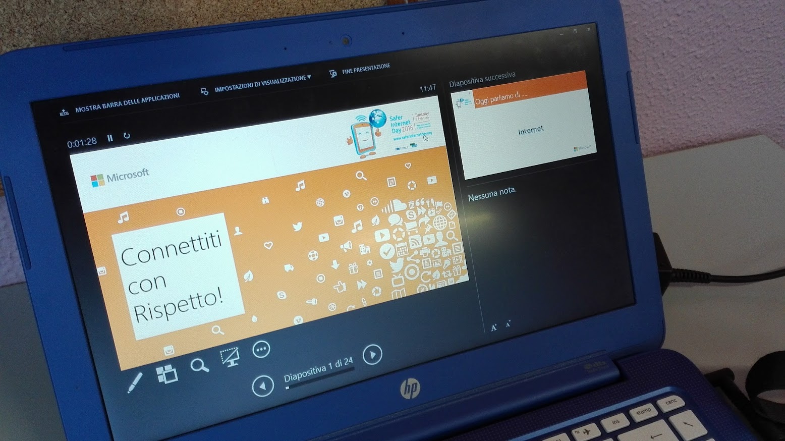 E intanto a scuola abbiamo finalmente una connessione a internet più adeguata. Dai primi di dicembre è arrivata la fibra e mediamente la velocità disponibile è sui 20 Mb in download e 3 in upload (prima era di 7Mb/0,4!). La differenza si sente e possiamo dire che tutti gli alunni possono adesso utilizzare in modo più efficiente lo strumento.